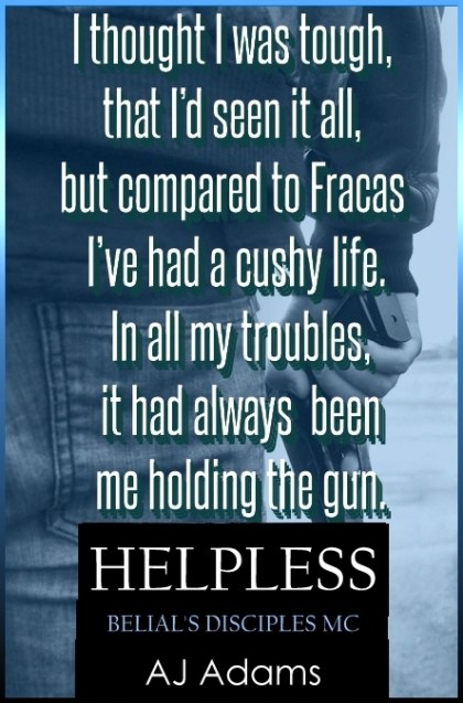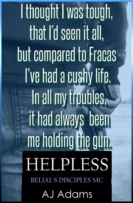 Fracas Macintyre has been in and out of trouble all her life but this time it’s worse than ever. In debt to a loan shark, she’s caught up in a war between the Alistairs, nicknamed The Irish Mob, and Belial’s Disciples, England’s nastiest MC. Kidnapped and at the mercy of Caden Winslow, Fracas is convinced that life is going to get very nasty indeed.