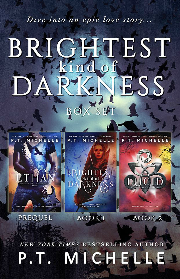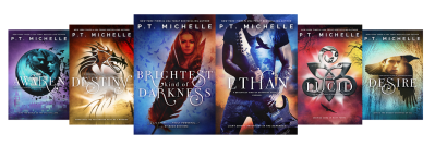 P.T. Michelle is the NEW YORK TIMES, USA TODAY, and International Bestselling author of the contemporary romance series IN THE SHADOWS (aka MISTER BLACK), the YA/New Adult crossover series BRIGHTEST KIND OF DARKNESS, and the romance series: BAD IN BOOTS, KENDRIAN VAMPIRES and SCIONS (listed under Patrice Michelle). She keeps a spiral notepad with her at all times, even on her nightstand. When P.T. isn’t writing, she can usually be found reading or taking pictures of landscapes, sunsets and anything beautiful or odd in nature.