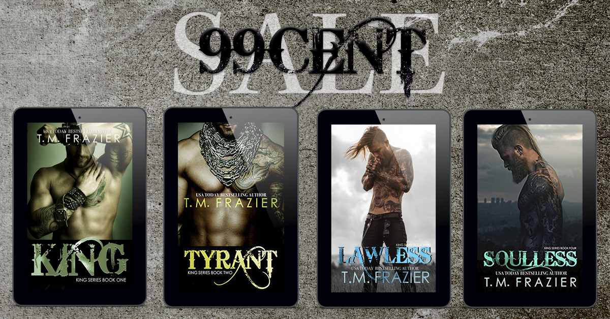 The first FOUR books in the King Series by T.M. Frazier are ON SALE for only 99¢ each!!! Limited Time Only!