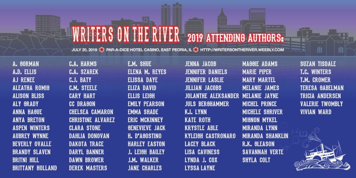 From 1-4 pm today, you’ll meet over FIFTY writers of all genres. Before and after you can play at the Casino or join in our After Hours Party right there at the hotel. Just click on http://writeresonthe river.weebly.com for more infomation! #WOTR19