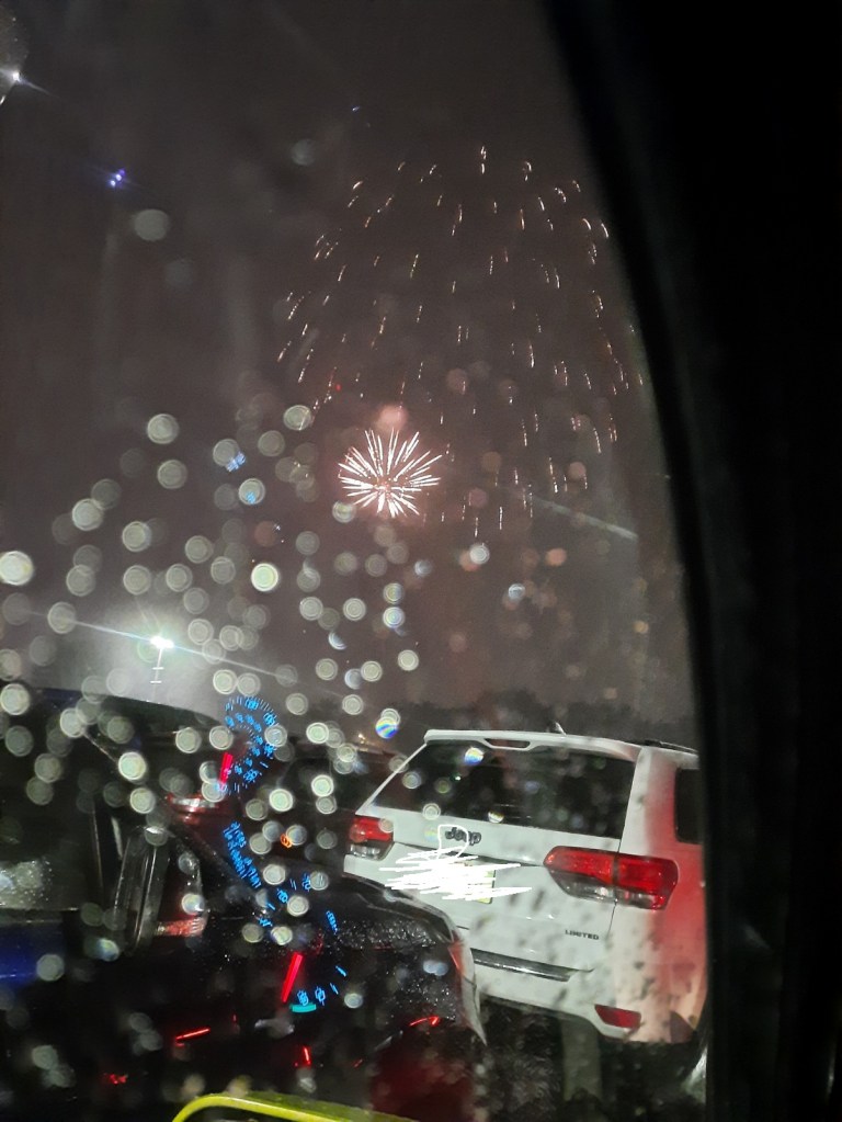We went to see fireworks last night. That’s right, in January! It was for the Waukesha Jamboree. I don’t know what that is, but we did enjoy ourselves. The city advertised you could watch from the park or from the privacy of your own car. The four of us sat in the car. Even then the little one complained about how loud it was, and we had the windows up. She loved it, though. We all did.