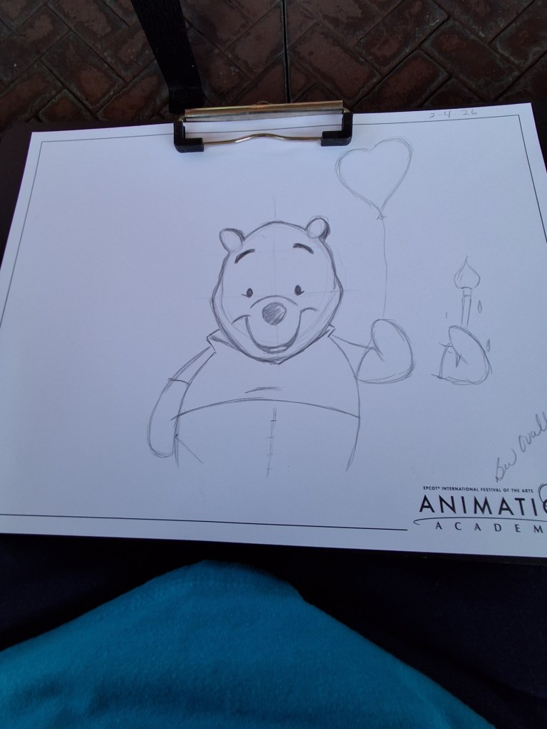 Part of the Art Festival was an animation lesson. One of Disney’s artists taught us how to draw Winnie the Pooh. Here is mine.