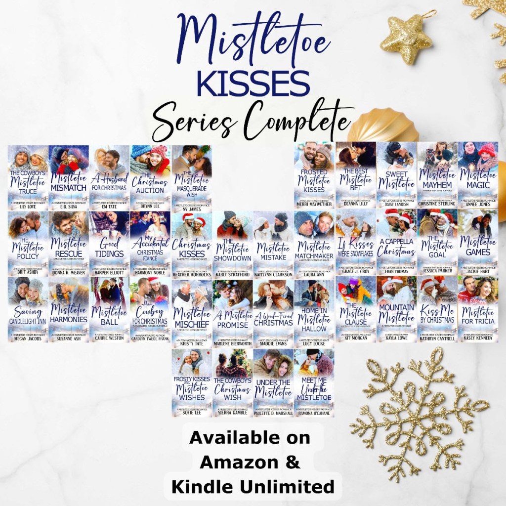 The “Mistletoe Kisses” series is a collection of 38 heartwarming clean romance stories that will make your spirits bright. Featuring popular tropes such as Fake Dating, friends to lovers, grumpy sunshine, accidental marriages, cowboys, Christmas magic, and so, so much more!